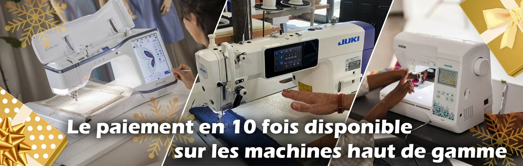 Nous sommes aussi distributeurs Brother Premium et Juki familiales, mais aussi Juki, Dürkopp Adler, Pegasus, Mauser Spezial et Happy Japan Industrielles.Nous pouvons ainsi vous faire profiter des meilleurs prix et garanties sur toutes leurs gammes.
